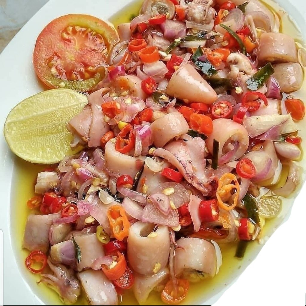 Note : jika ingin rasa sambal matah lebih meresap ke cumi kamu bisa tumis sebentar agar rasa sambal meresap kedalam daging cumi